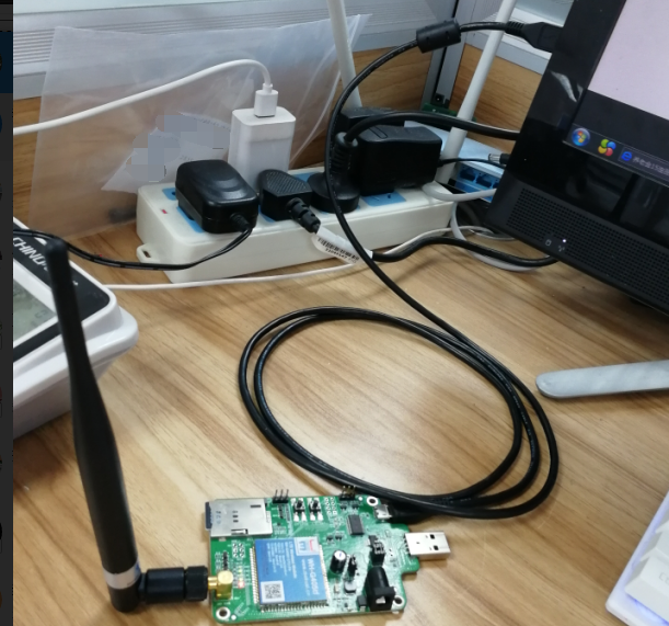 (1) 硬件連接方式1:裝上sim卡,將模塊安裝在測(cè)試底板上,接上天線,用普通的安卓數(shù)據(jù)線將模塊連接到電腦上