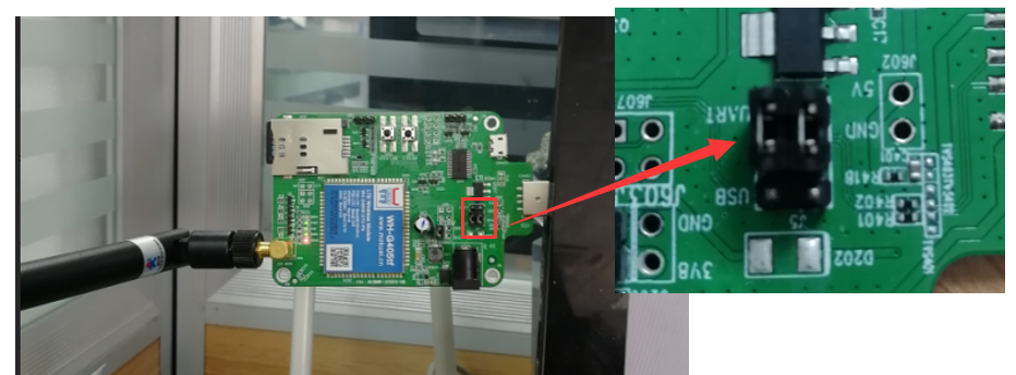 硬件連接方式2:這種連接方式下,需要注意下圖紅框內(nèi)的跳線帽需要接到UART端