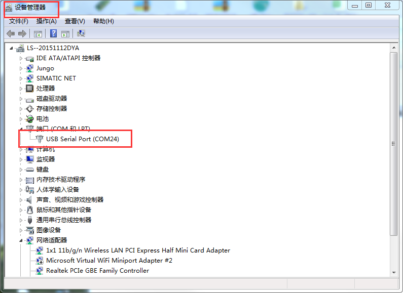 其中串口號可以在電腦的“設備管理器”中查看,見下圖;