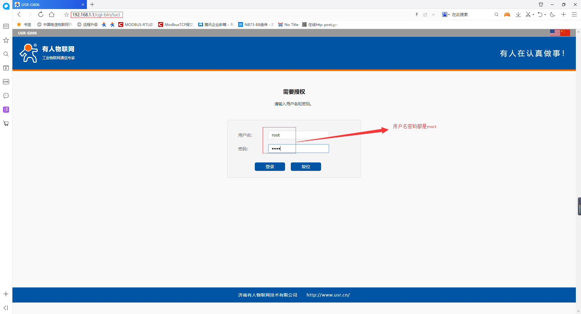 1、以上步驟完成后,打開路由器的配置網頁,出廠默認地址是192.168.1.1 用戶名密碼均為root