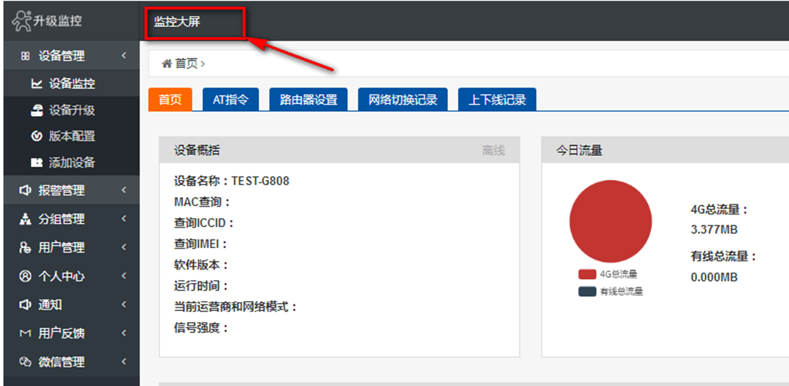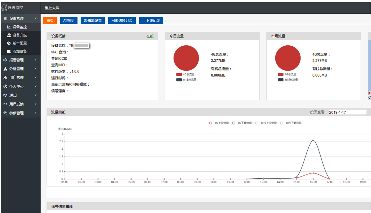 4)流量監控開關:當需要使用流量報警功能時“流量監控開關”需打開。日流量限額、月流量限額,用于進行流量報警功能,分別表示日最大使用流量和月最大使用流量。