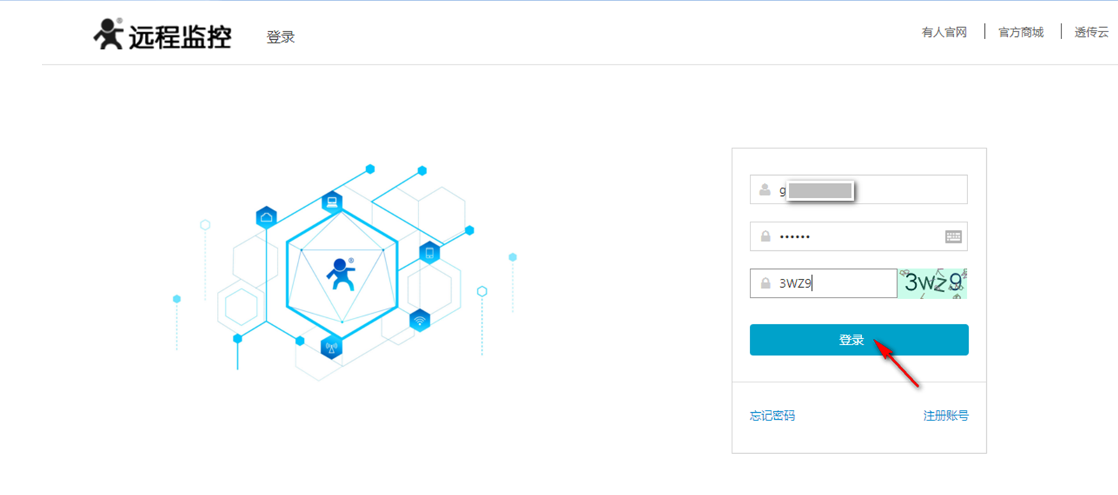 3、登陸遠程監控后臺http://ycsj1.usr.cn,填寫審核過的賬號、密碼,驗證碼然后點擊“登錄”