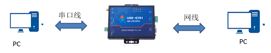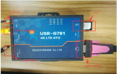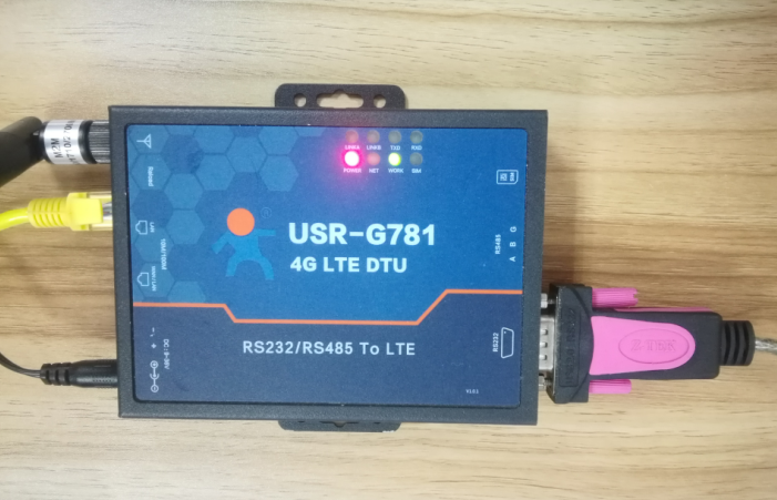 (1) 硬件連接: G781的串口通過UAB轉RS232/485接到PC上,LAN口通過網線鏈接到電腦的網口上,用我司提供的適配器供電。