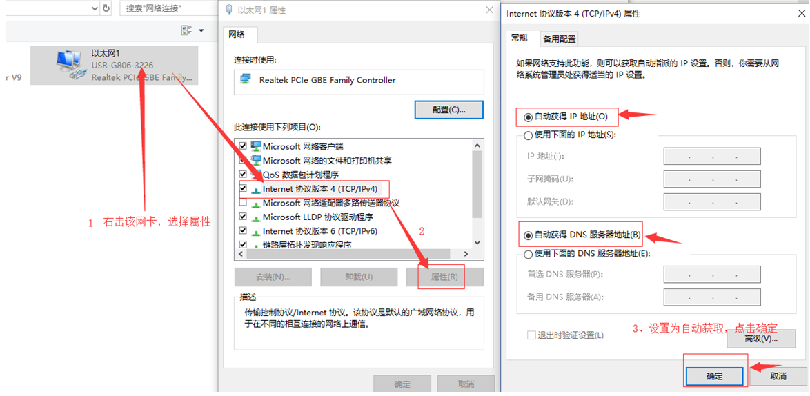 1、電腦配置網(wǎng)卡,選擇自動(dòng)獲取IP地址