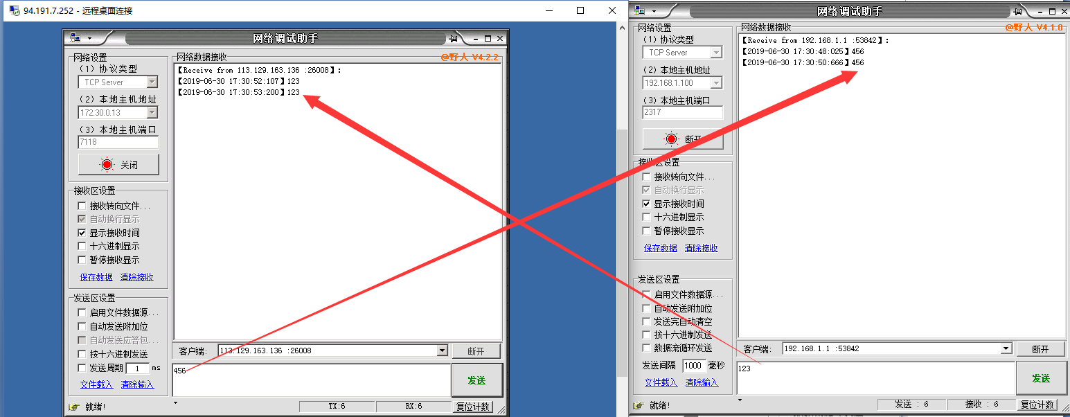 服務器B地址為LAN口設備IP及監聽端口。如192.168.1.100、2317(本案例用PC模擬網口設備)
