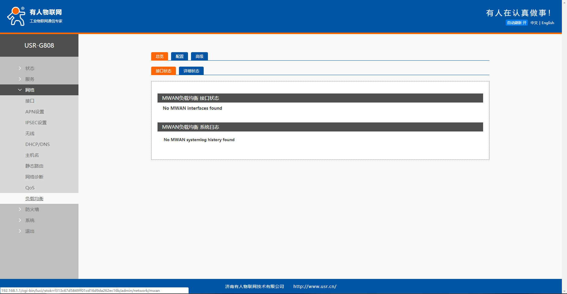 1、進入G808配置網頁后,點擊網絡----負載均衡界面,如下是未開啟負載均衡功能的界面顯示。