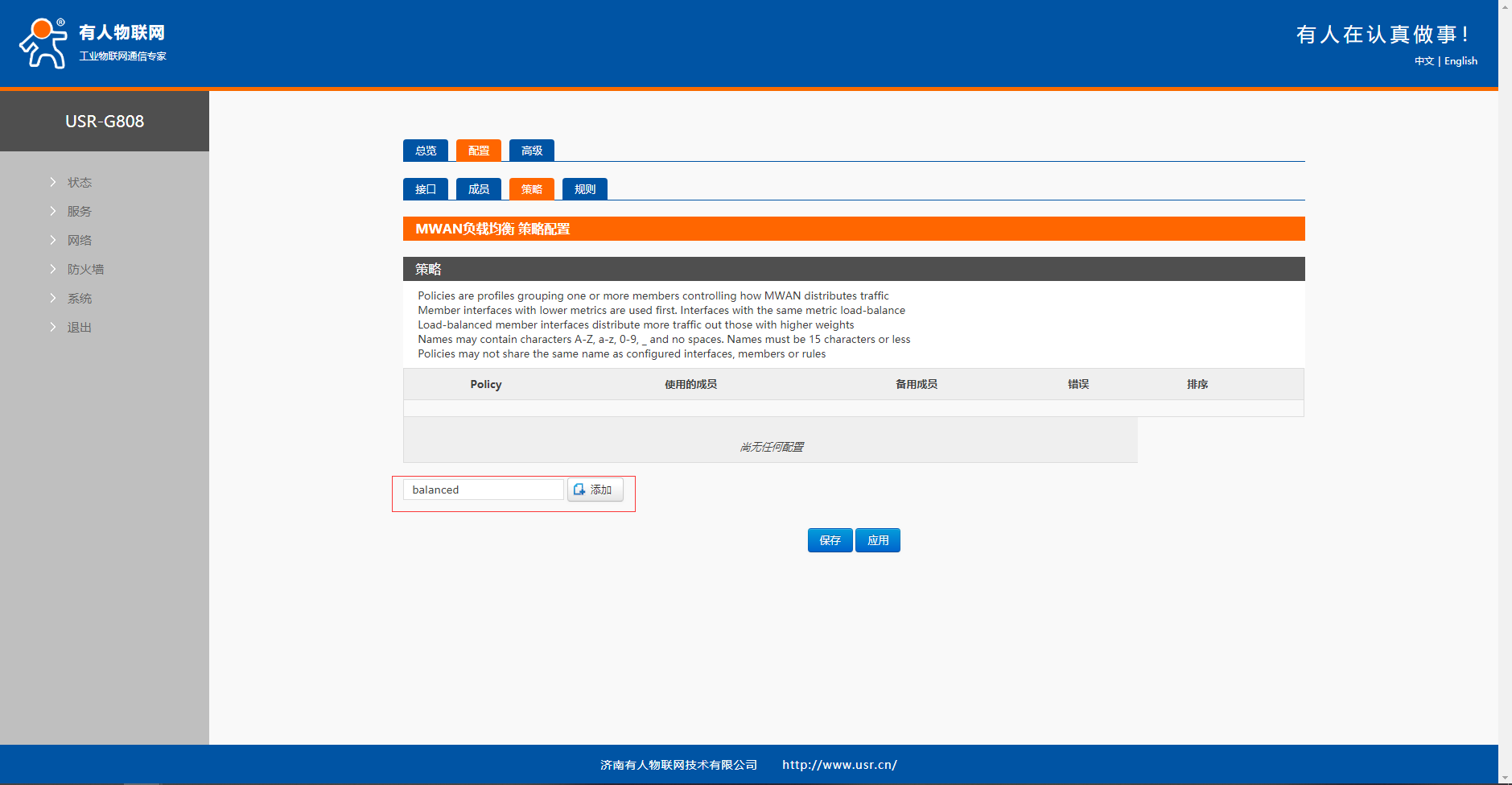 點擊配置---策略,添加策略(策略名稱可以自定義),這里填寫balanced,然后點擊添加。