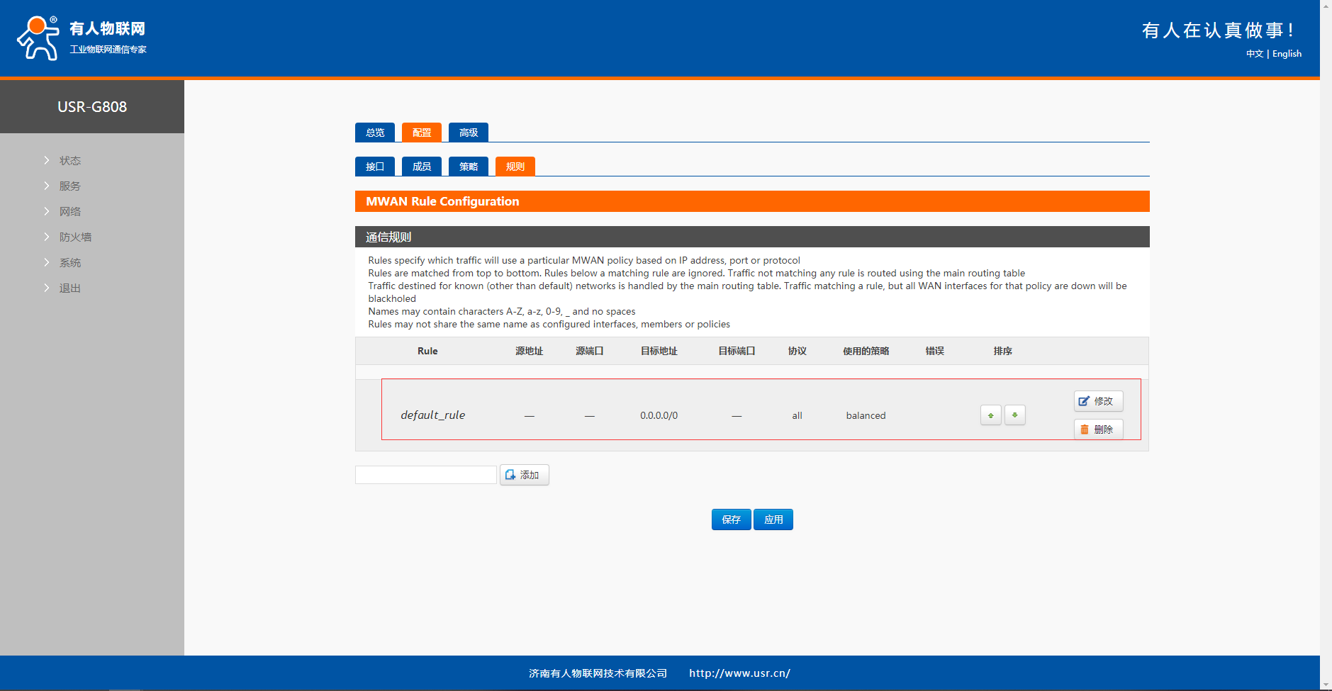 點擊配置----規則,添加規則(規則名稱可以自定義),這里設置default_rule。設置完成后點擊添加。