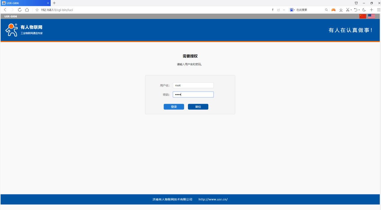 1、 打開瀏覽器(不要用360瀏覽器),在地址欄輸入192.168.1.1,出廠默認用戶名密碼為root