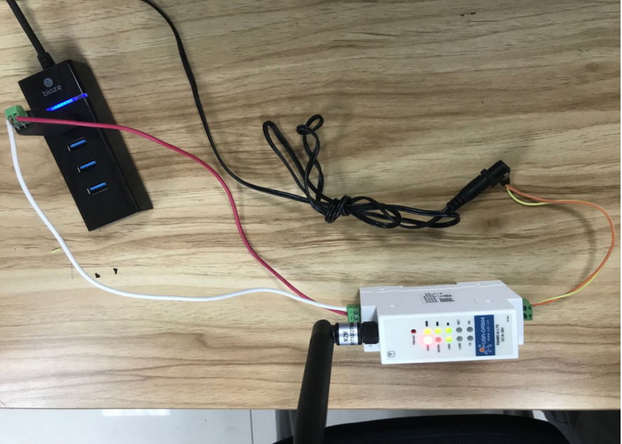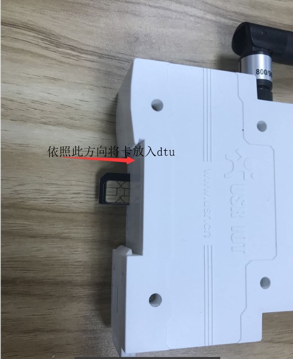 1. 硬件連接:裝上sim卡,sim卡依照圖1(1)的方式放入dtu當(dāng)中。接上天線(4g天線),USR-DR504的串口通過USB轉(zhuǎn)485接到PC上,用我司提供的適配器供電,整個(gè)連接圖如圖1(2)所示。