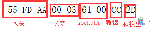 串口端輸入數據:55 FD AA 00 03 61 00 CC 2D