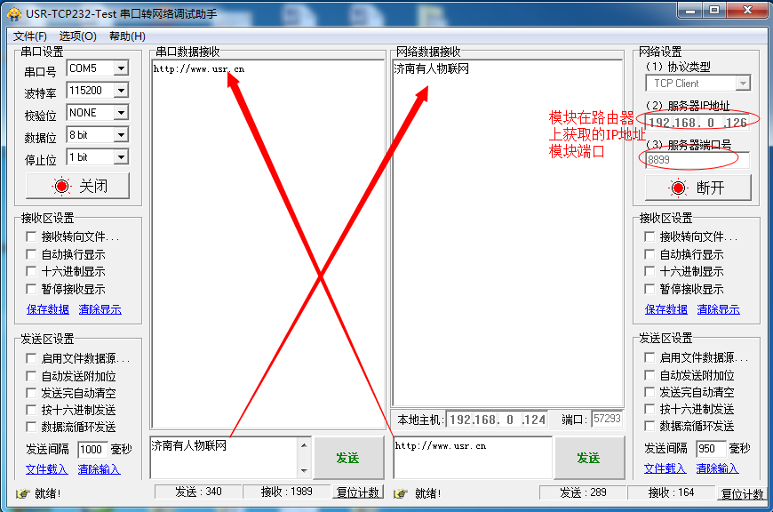 使用AT+WANN可以查詢到無線路由給模塊分配到的IP地址。通信地址就使用這個IP通信。以上網絡調試助手和虛擬串口軟件通信的IP都是以此IP為準。