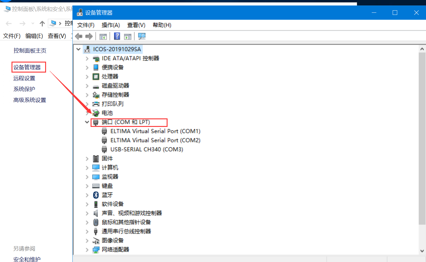 串口號查看方式:右擊此電腦-->屬性-->設(shè)備管理器(如果查看不到,安裝驅(qū)動精靈或者更新驅(qū)動)