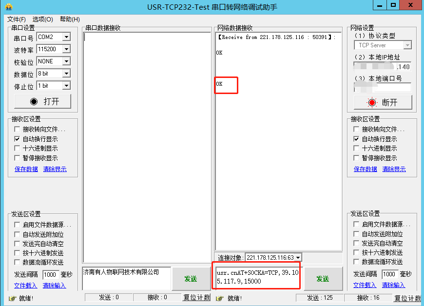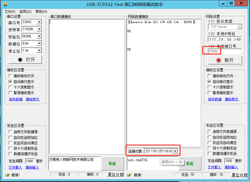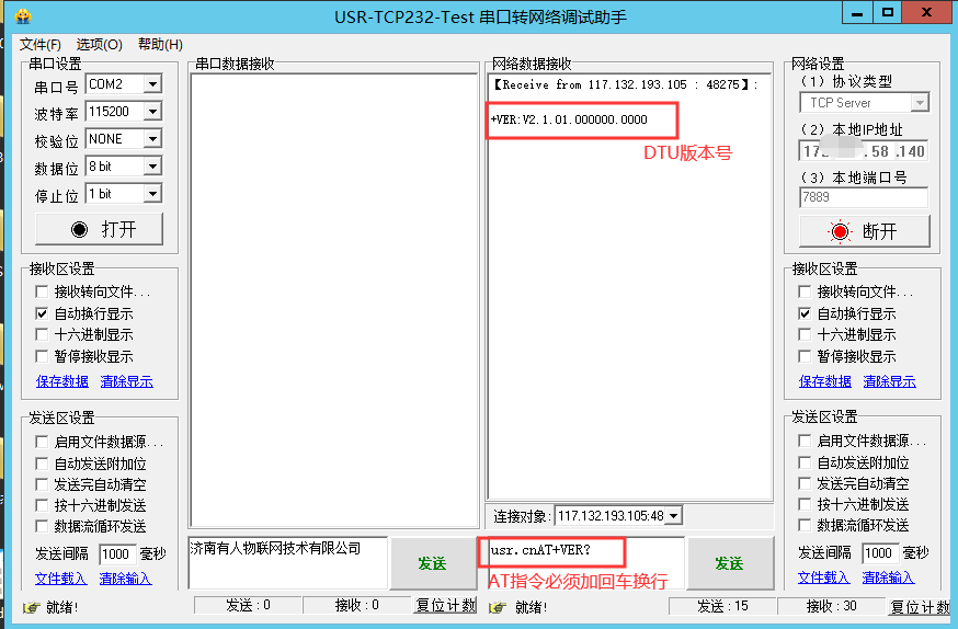注意:修改的參數(shù)都需要重啟后才能生效,所以最后發(fā)送usr.cnAT+Z重啟DTU