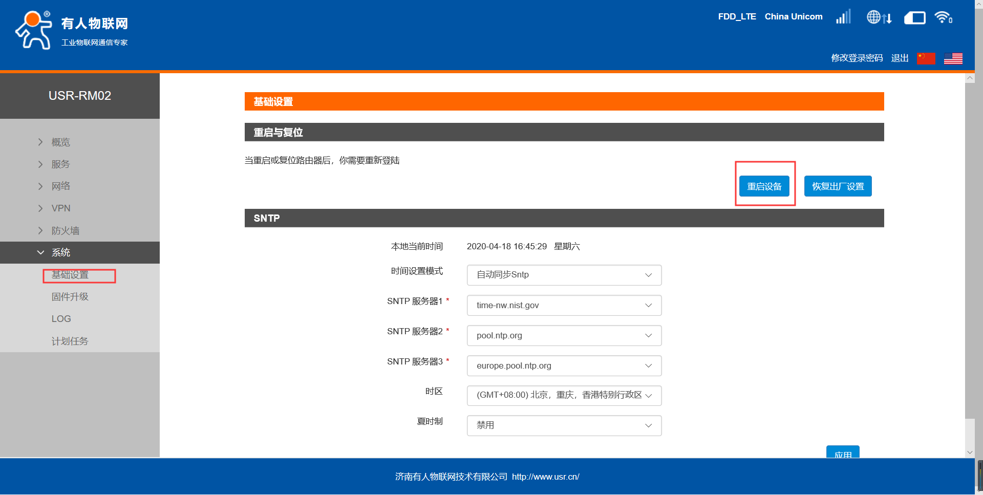 3、設置完參數后點擊系統--基礎設置--重啟設備。