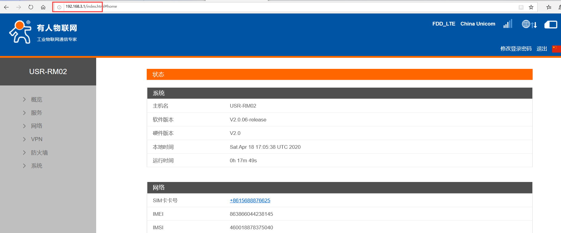 1、進入網絡--內網設置,進入修改界面,出廠默認,RM02的LAN口IP為192.168.1.1