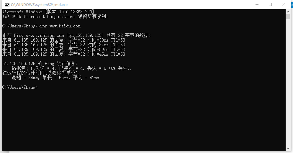 pC上打開命令行,ping外網檢測OK,證明pC通過路由器聯網OK