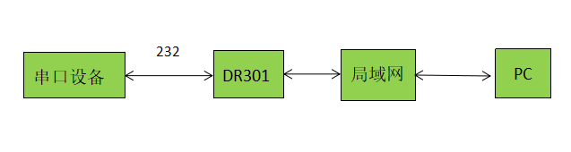 1、將串口服務(wù)器(USR-DR301,簡(jiǎn)稱301)的串口通過串口線(或USB 轉(zhuǎn)串口線)與pC相連接,通過網(wǎng)線將301的網(wǎng)口pC的網(wǎng)口相連接,檢測(cè)硬件連接無錯(cuò)誤后,接入我們配送的電源適配器,給301供電。