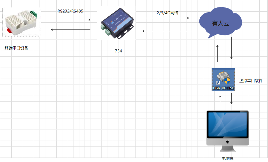 點擊添加——選擇虛擬串口號——網絡協議tcp client ——目標IP/域名clouddata.usr.cn——端口15000——啟用透傳云——將云端生成的虛擬串口的設備編號和通訊密碼復制到參數區,點擊確認;可以看到虛擬串口在有人云上線