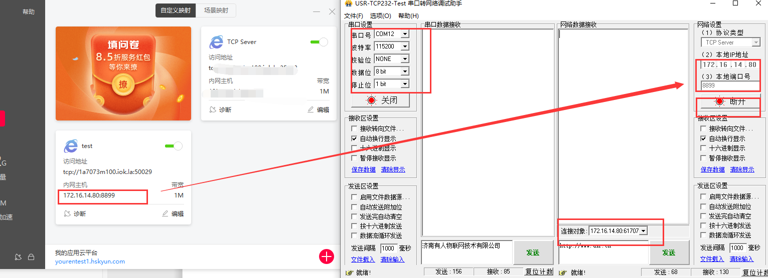 10.使用有人Test調試助手軟件測試GPRS DTU串口到網絡數據收發情況
