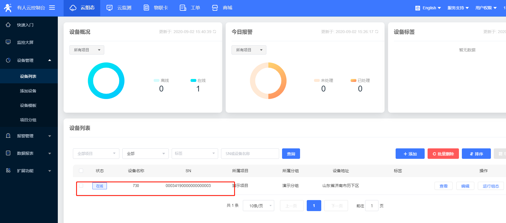 2. 在設(shè)備管理,添加設(shè)備中添加設(shè)備