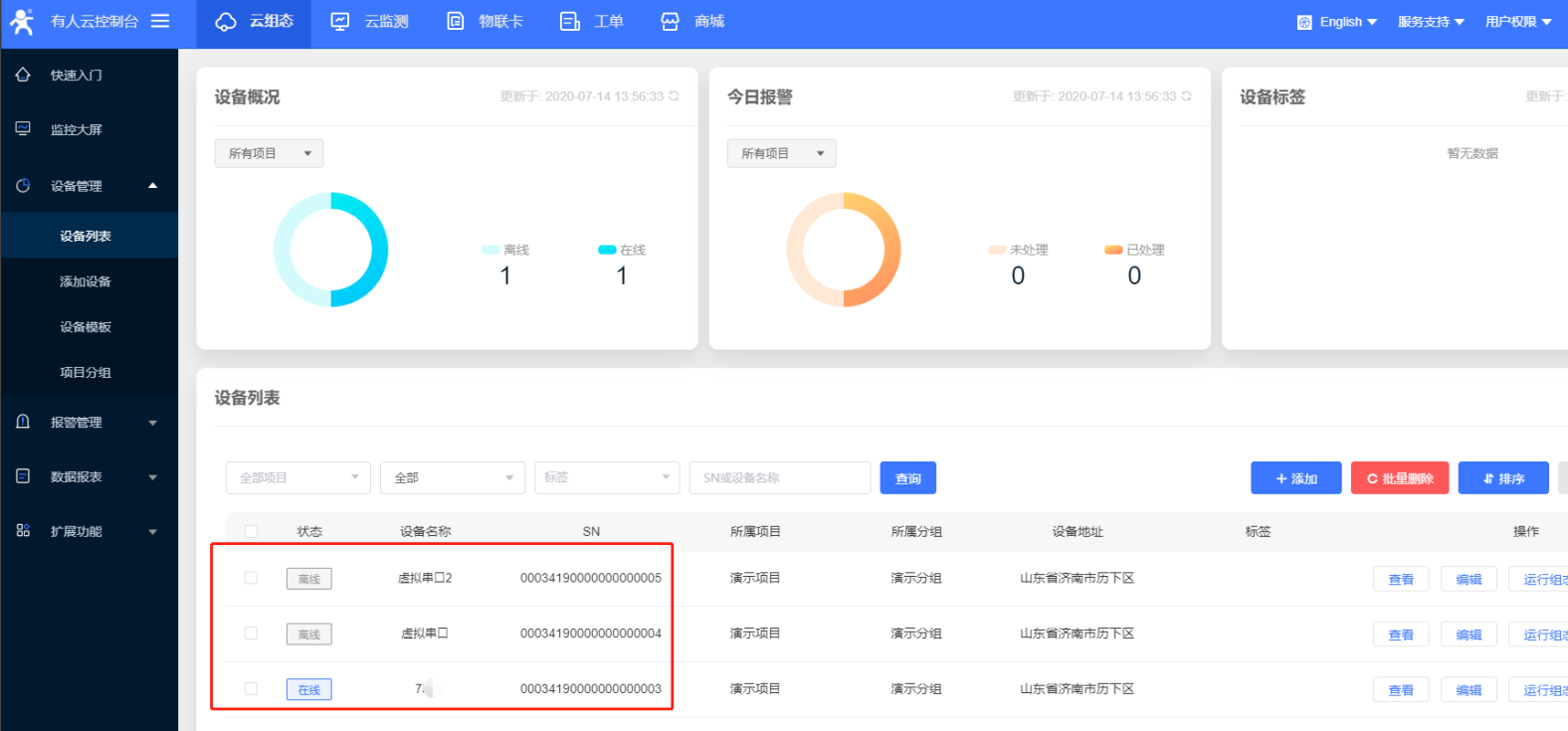 終端串口設(shè)備——730——有人云平臺(tái)——多虛擬串口