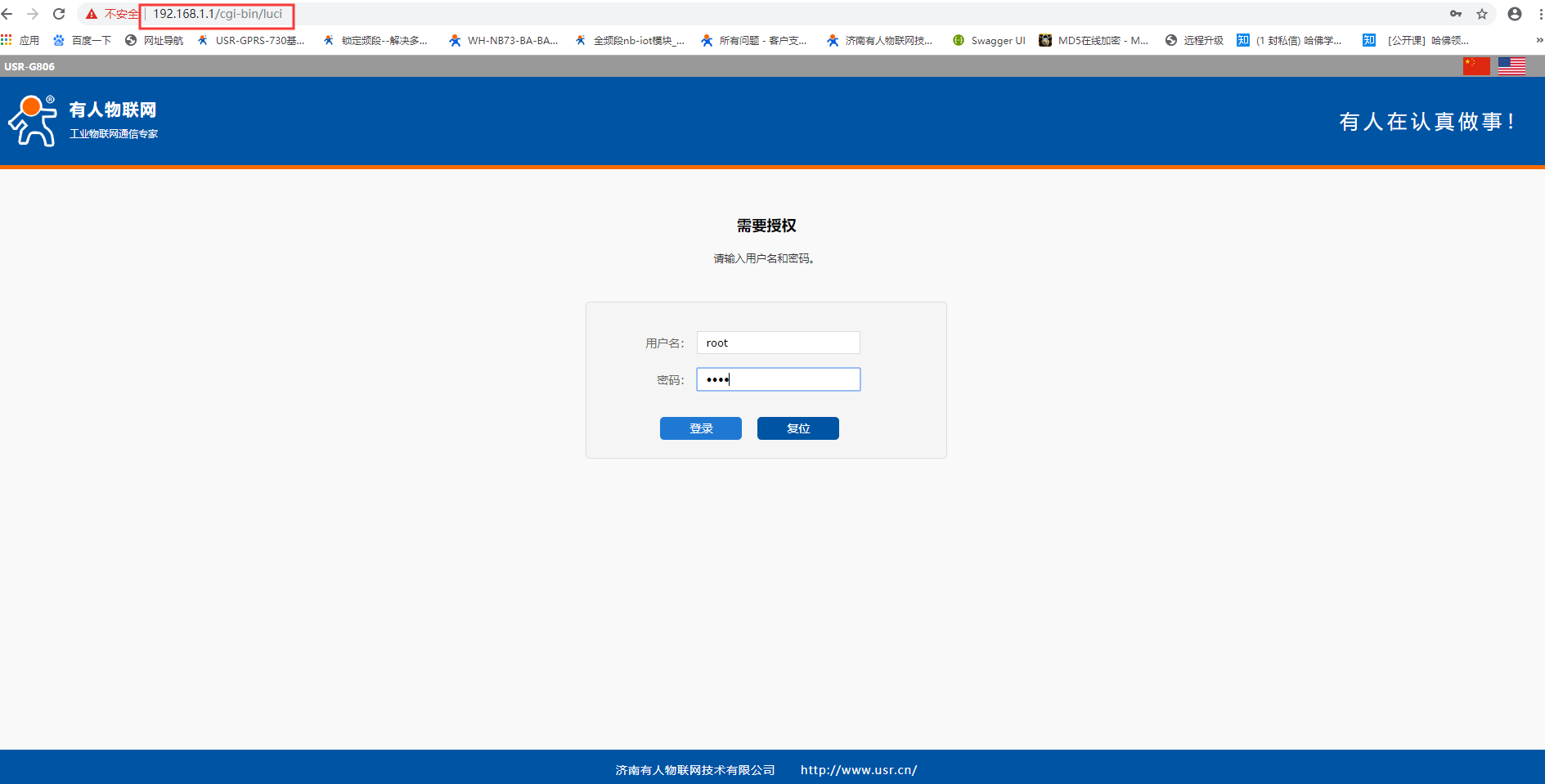 3.打開瀏覽器(不要用360瀏覽器),在地址欄輸入電腦獲取到的網(wǎng)關(guān),通過網(wǎng)關(guān)登錄內(nèi)置網(wǎng)頁(yè)界面,出廠默認(rèn)網(wǎng)關(guān)為192.168.1.1,用戶名密碼都是root