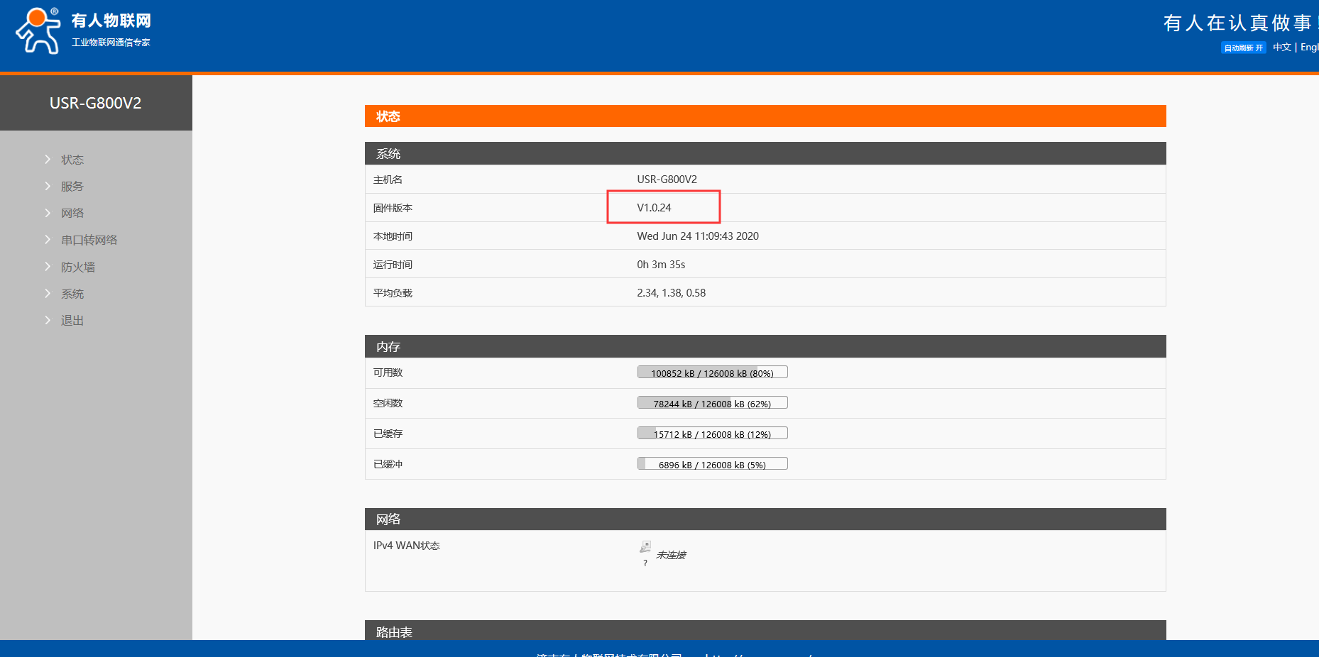 1、確認工業路由器是否為有人云版,可以看一下設備貼膜,或內置網頁固件版本號,1.0.24版本及以上為有人云版本。進入內置網頁步驟看一下第二部分中的PC通過路由器上網案例