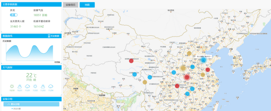 有人云支持通過PC、APP、大屏實時監控設備整體運行狀態,實時收集、映射、存儲、分析設備運行數據,實時上傳故障報警、視頻監控信息,幫助客戶提高服務水平,并創造新的業務模式和機會。平臺可對設備進行定位,方便用戶隨時了解設備現狀。