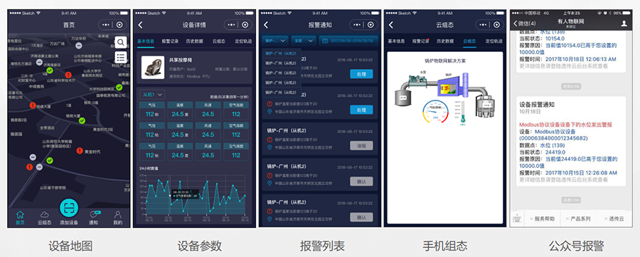 有人云支持微信關聯,用戶可以借助手機端遠程查看、接收設備的運行狀態和報警信息,隨時隨地查看設備地圖、設備參數、報警列表,并能進行手機組態操作,移動端操控,方便快捷。