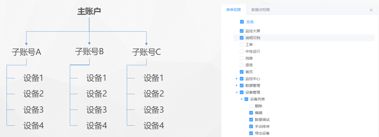 主賬號監控所有設備,子賬號之間相互獨立,只對自己可見。