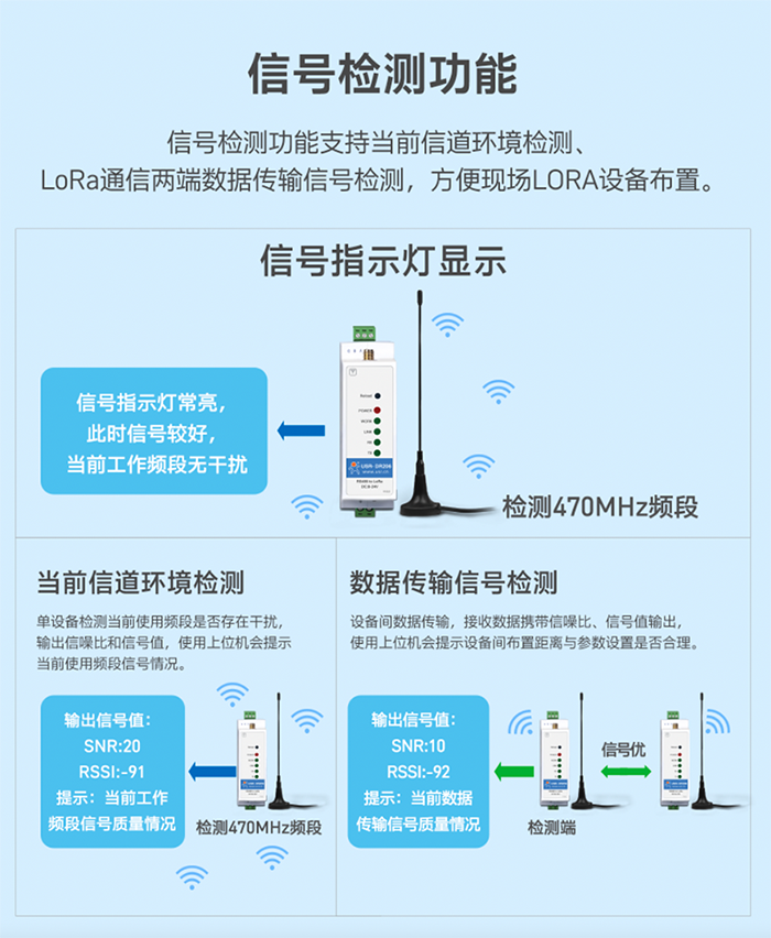 現場應用布置更方便,用戶通過信號檢測功能能夠詳細了解當前LoRa布置是否合理,環境中是否有干擾,輕松掌控現場情況。