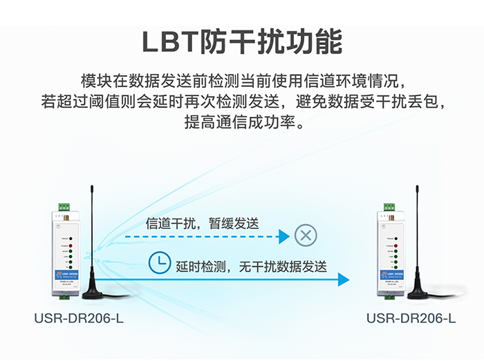 擁有LBT檢測、前向糾錯、數據重傳、局域化網絡過濾等多重防數據干擾措施,存在數據發送前信道檢測、數據發送中應答機制、信噪比低或誤碼率高時提高數據正確性、局網絡篩選等處理,全面提升數據傳輸穩定性。