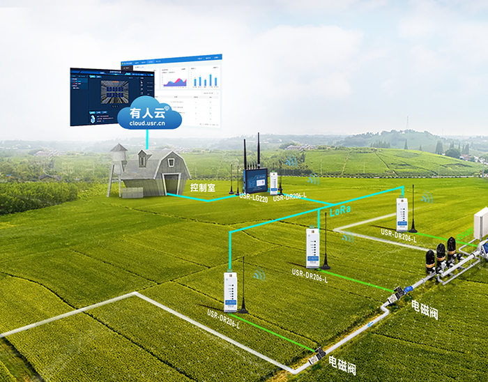 LoRa設備在智慧農業中的應用,也能有效助力智慧農業建設。將DR206-L接入農田類傳感器,通過設置與LoRa網關無線數據傳輸,大農田區域布置網絡,分區管理,能夠快速實現遠距離數據收發和控制,對灌溉、病蟲害、施肥情況在線監測與控制,從而減少值守人員數量,全面提升農場生產管理水平,提高經濟效益,降低運營成本。