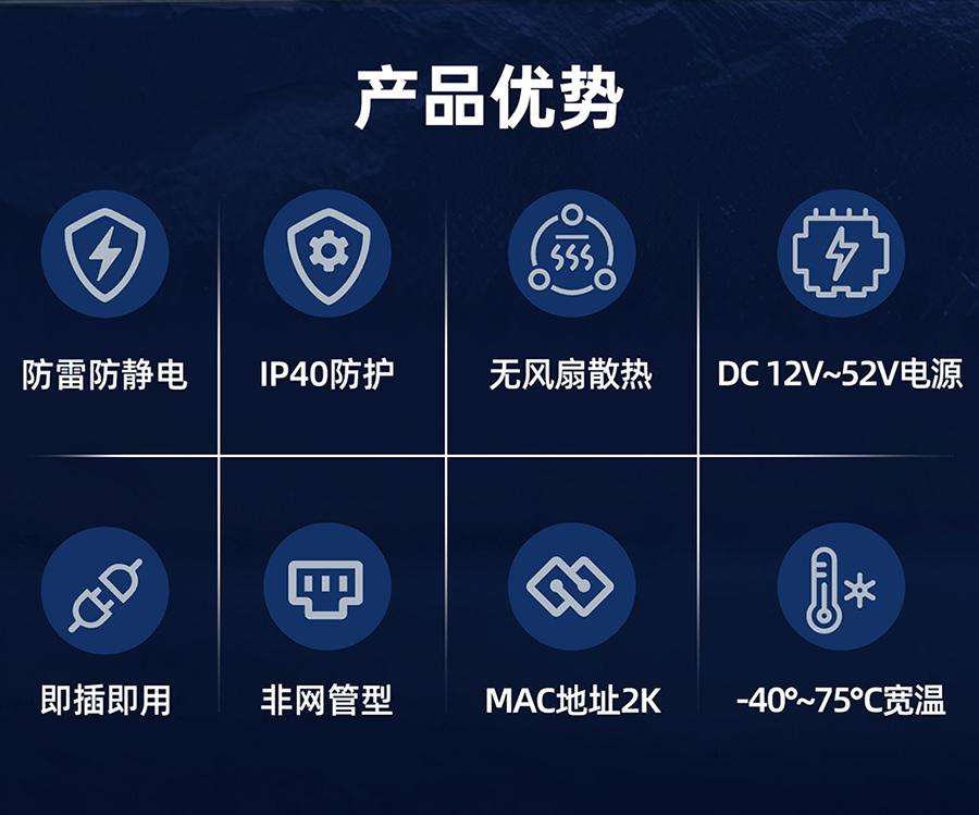 適用于軌道交通、平安城市、智能交通、安防監控和其他惡劣環境中的網絡部署等場景。
