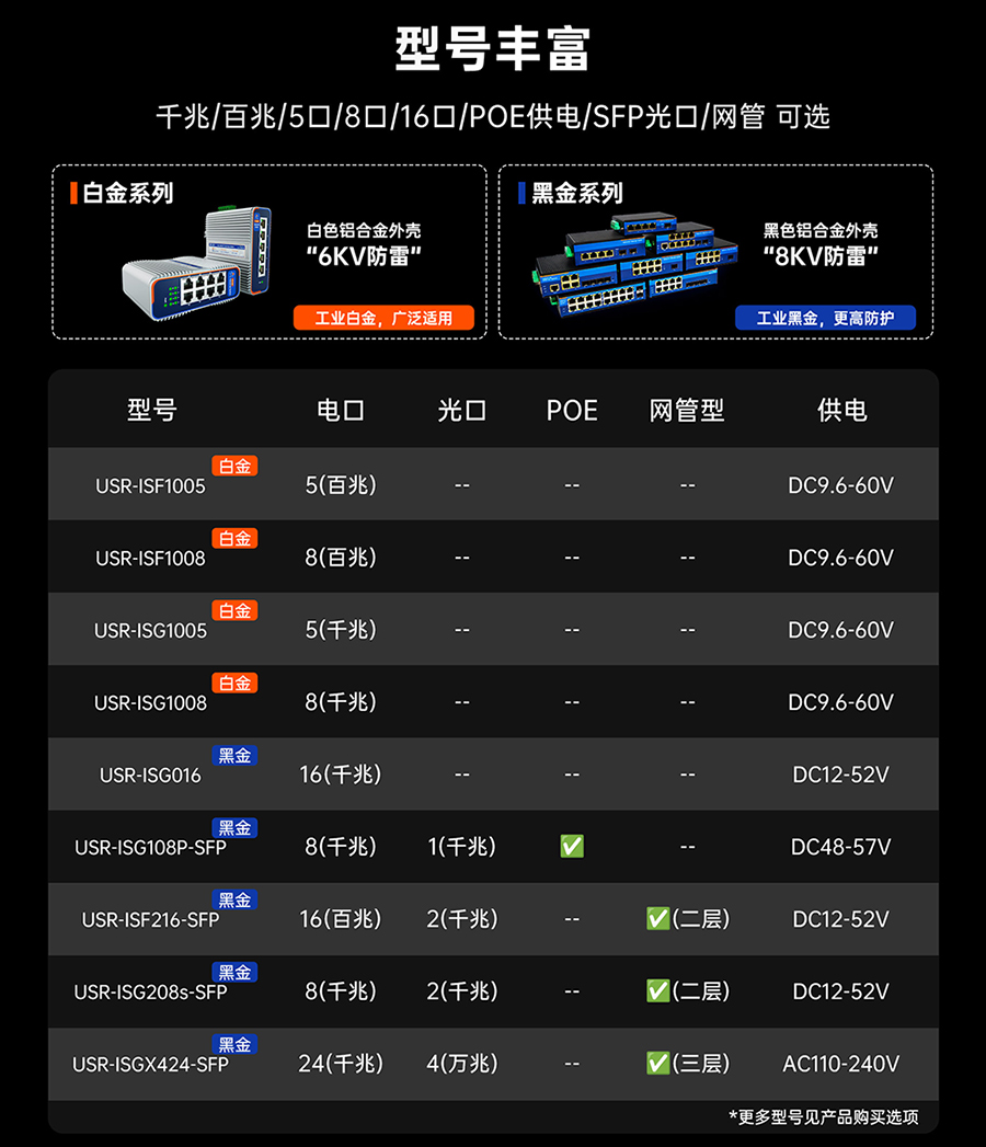 為滿足客戶的多樣需求,有人再次全新推出3大工業交換機系列,精準適配不同場景:本安交換機為易燃易爆的煤礦等工業危險環境筑起“安全盾”;車載交換機化身交通中“移動神經中樞”,保障數據穩定傳輸;黑金交換機新品性價比再提升,性能不打折,價格更親民!
