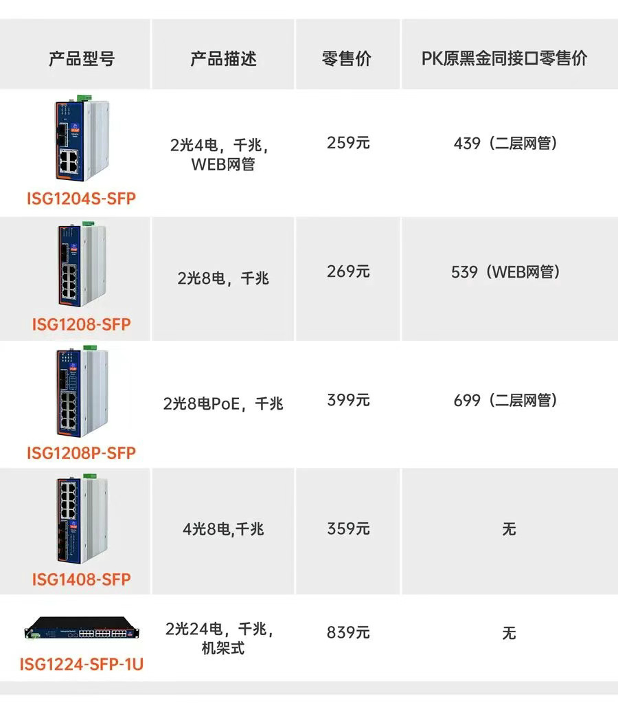 核心價值: 延續熱銷黑金系列高防護、抗造、穩定基因,性能不減,價格大幅降低,為企業提供更高性價比的工業交換機選擇。