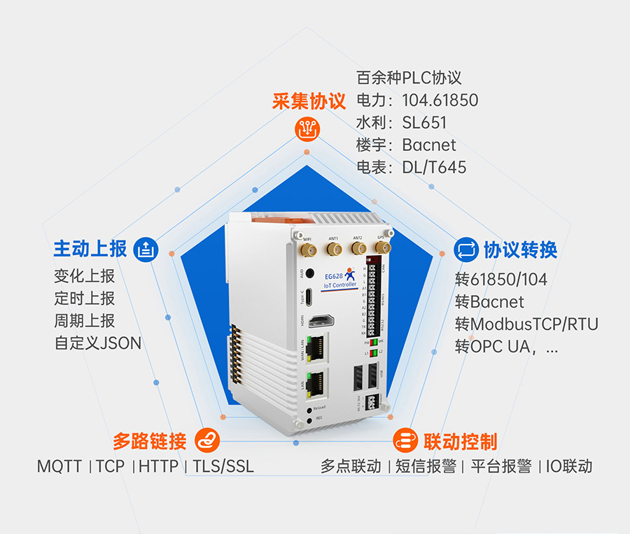 物聯網控制器需支持與電網調度系統的雙向通信,快速解析DR指令(如削減負荷量、響應時間窗口)。USR-EG628通過其5G/4G/Wi-Fi多模通信模塊,可實現毫秒級指令接收,并支持IEC 61850、DNP3等電網專用協議,確保與調度系統的無縫對接。