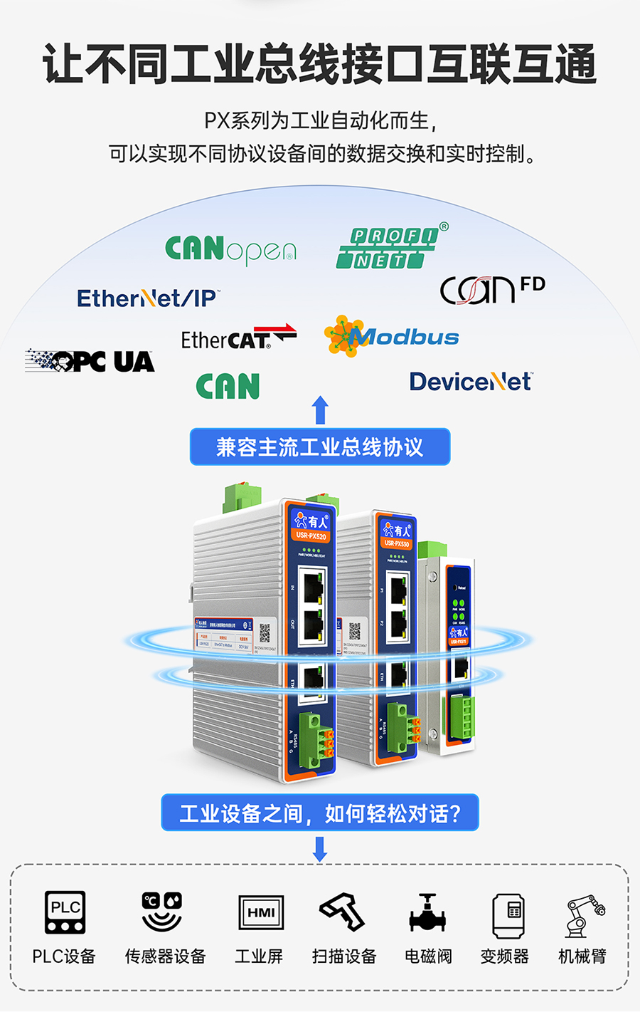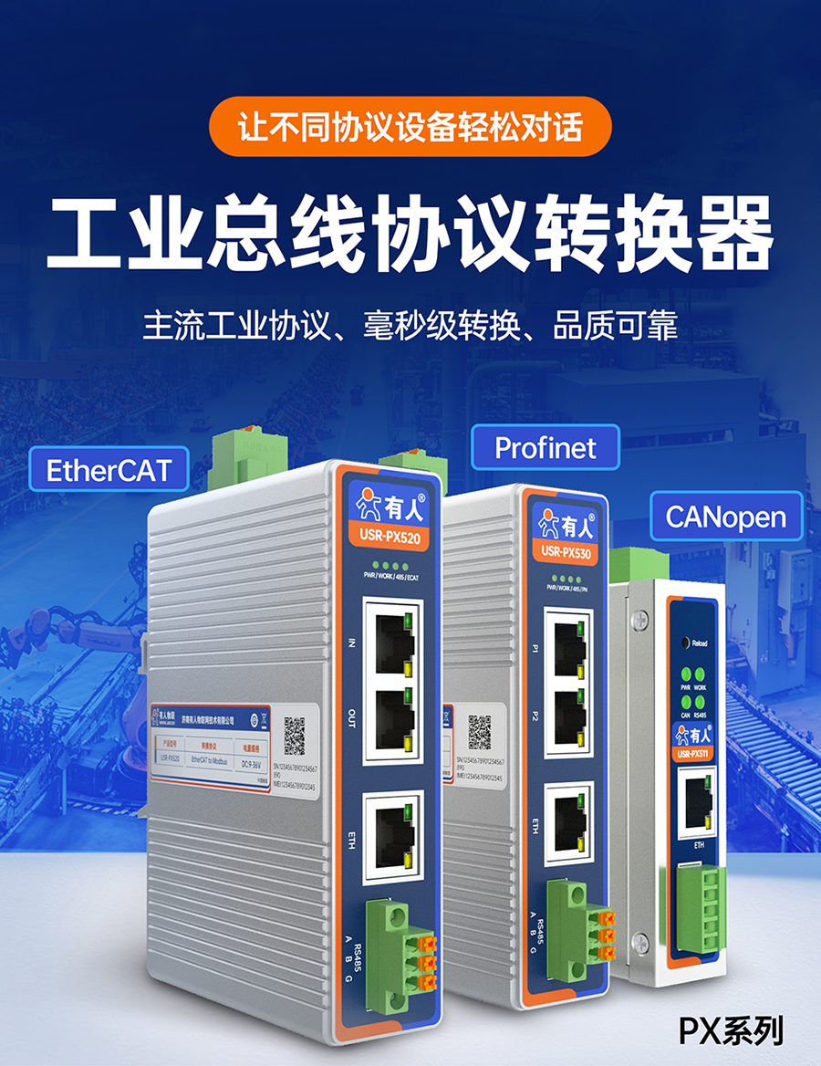 以上困境,交給有人全新推出的工業總線轉換器USR-PX系列!我們比任何人都清楚:穩定、兼容、成本才是工控剛需!