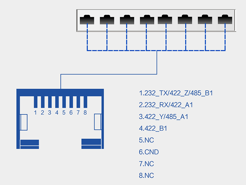 八串口服務器用于實現串口到以太網口的數據的雙向透明傳輸,通常具有RS232 / RS485 / RS422接口之間的數據進行轉換。有人近期推出一款八串口服務器USR-N668,所有串口封裝為RJ45口形式,可以通過RJ45的轉接板與DB9針串口進行轉換。但八串口服務器的引腳定義如果弄不清楚,必然會影響項目現場中的連接情況。