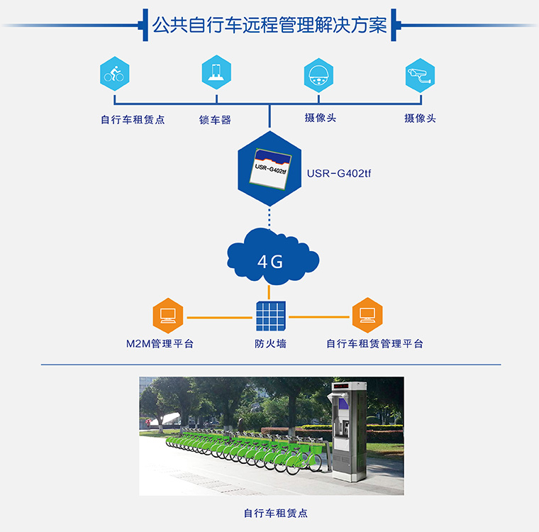 針對城市公共自行車分布分散,維修安全等問題,采用4G模塊實現租賃點實時聯網,對自行車樁位狀態和存/取車信息實時傳輸,提升了自行車租賃點規模與時效管理,提高服務質量。
