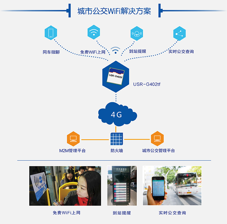 利用4G模塊聯網使公交車完全智能化,讓乘客輕松實現wifi聯網,隨時查詢公交出行到站信息,節約乘客時間,方便出行,更好的提升城市形象。