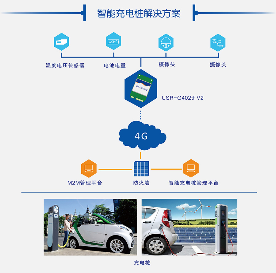 充電樁與4G模塊相連實現聯網,將大量實時數據與實時監控信息快速傳輸到業務中心與用戶,更優化管理充電樁分散狀況,節約人力物力,降低成本。