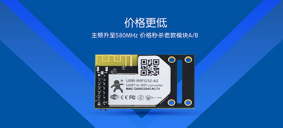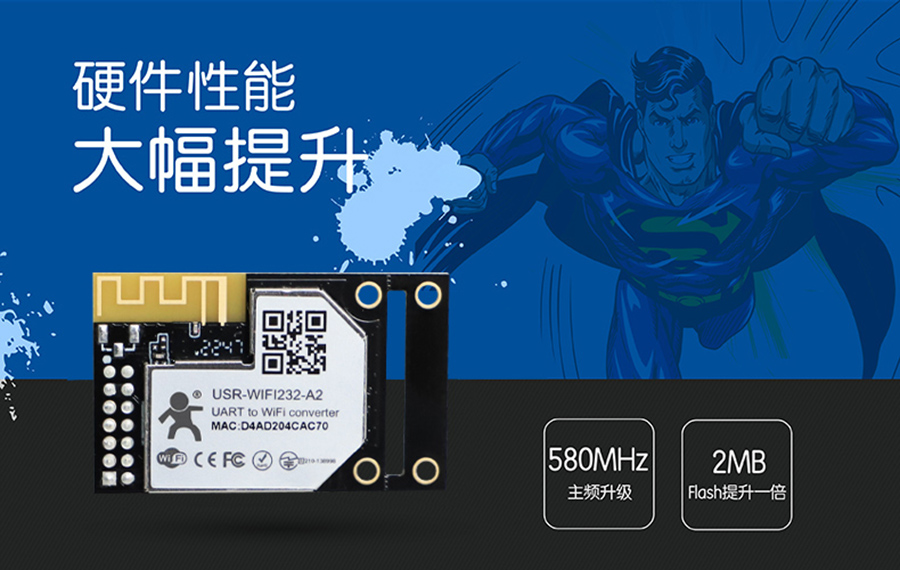 串口轉WIFI模塊A2/B2采用新方案,主頻升級至580MHz,Flash提升至2MB。