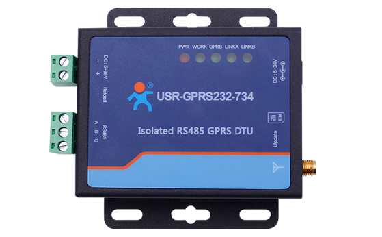USR-GPRS-734是一款RS485 GPRS DTU,是由GPRS模塊USR-GM3開發而成。其支持RS485串口,實現串口數據與GPRS網絡雙向透明傳輸。其支持多重保護,包括電路保護(ESD靜電保護和EFT快速脈沖保護)、電源保護、RS485口保護(485防浪涌、過流保護、數字隔離保護),是一款高穩定性的聯網設備。