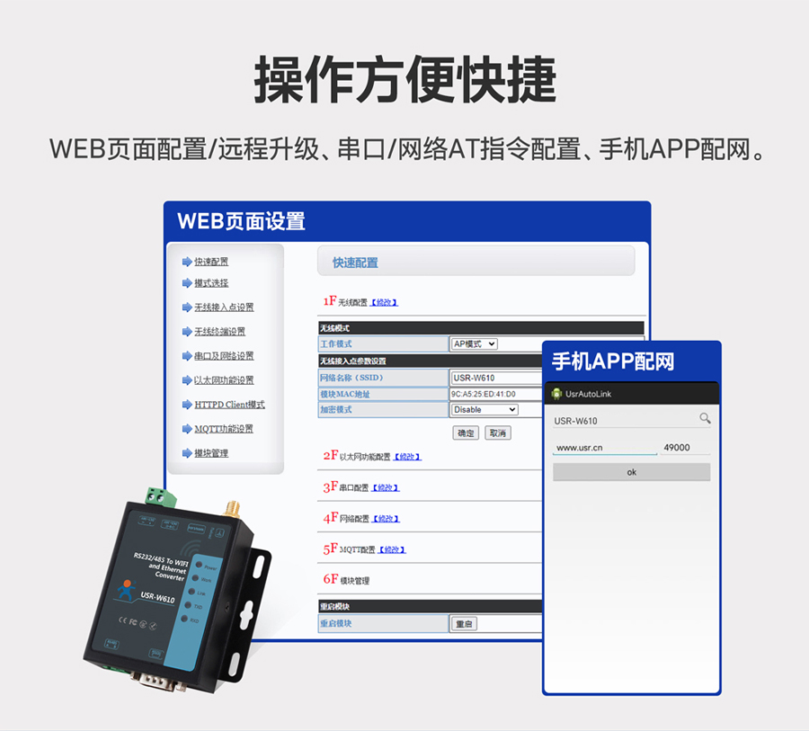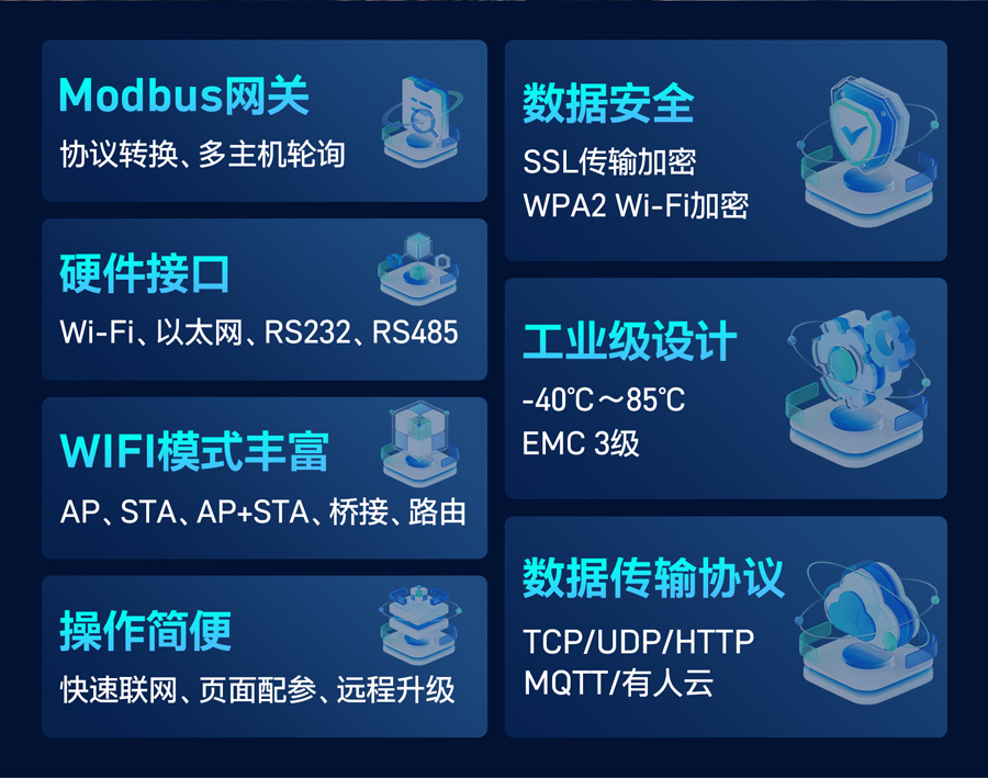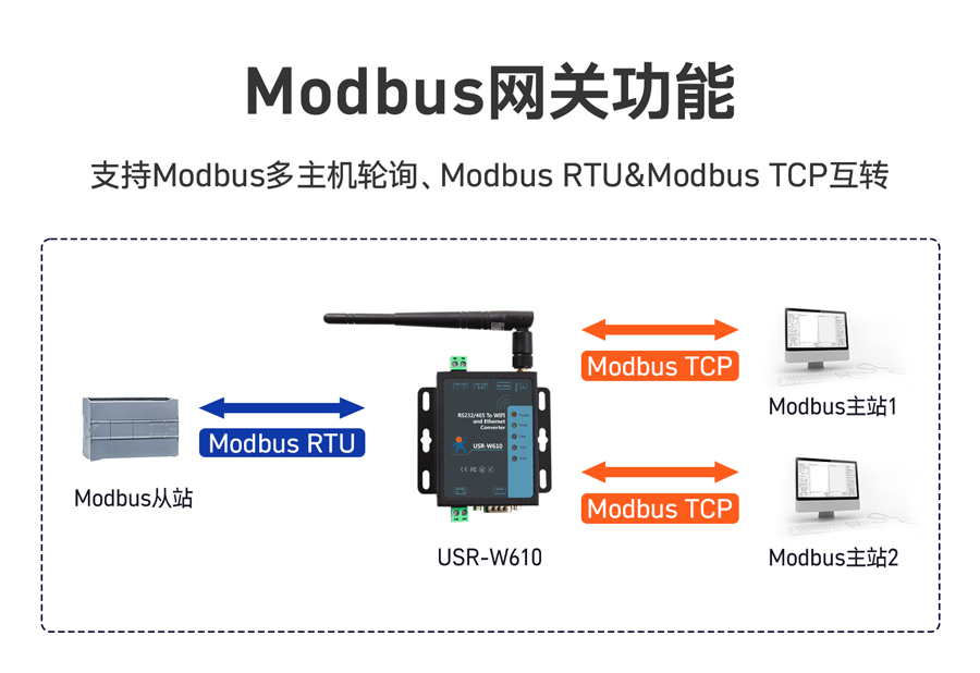 透明傳輸、串口指令、HTTPD Client、Modbus TCP<=>Modbus RTU