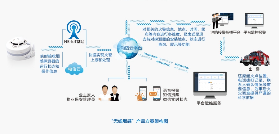 有人物聯網專注于消防物聯網領域多年,為智慧消防提供聯網解決方案,助力智慧消防產業發展。根據獨立式煙感的實際應用場景和煙感廠家的不同需求,有人物聯網全資子公司上海穩恒科技推出NB-IoT模組方案,對獨立式煙感行業進行深入的產品定制和前景規劃,為煙感提供云端和嵌入式硬件聯網解決方案。