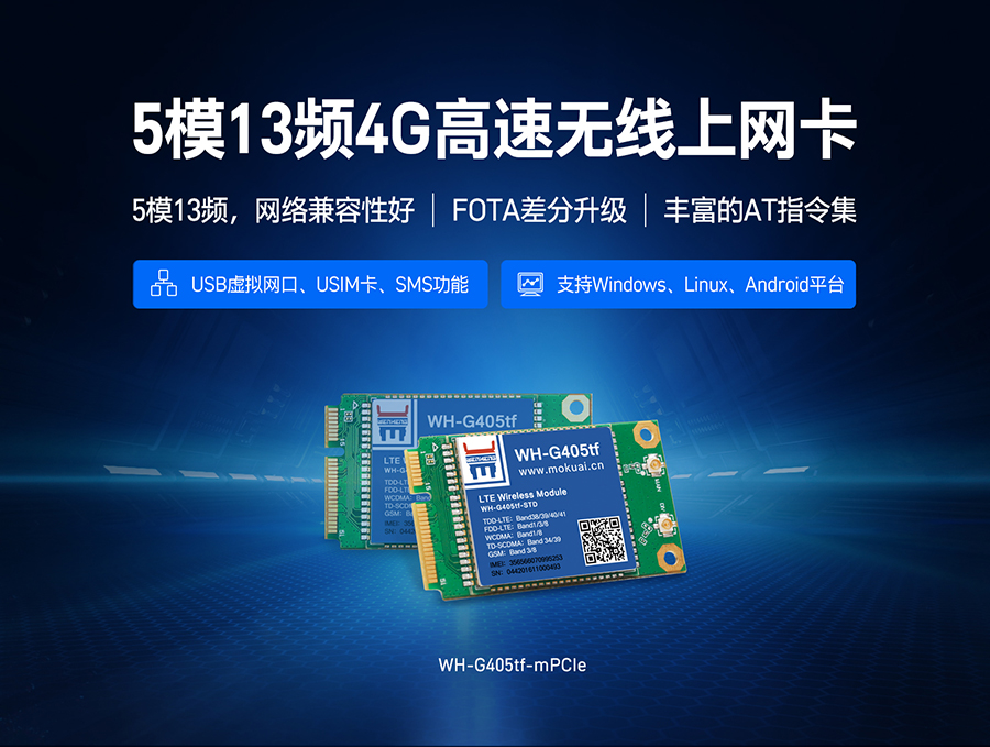 G405tf-mPCIe支持移動、聯通2/3/4G,電信4G網絡信號,
