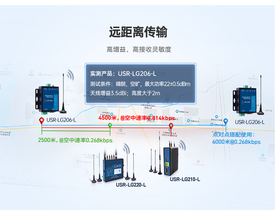 點(diǎn)對點(diǎn):大于6000m@0.268Kbps