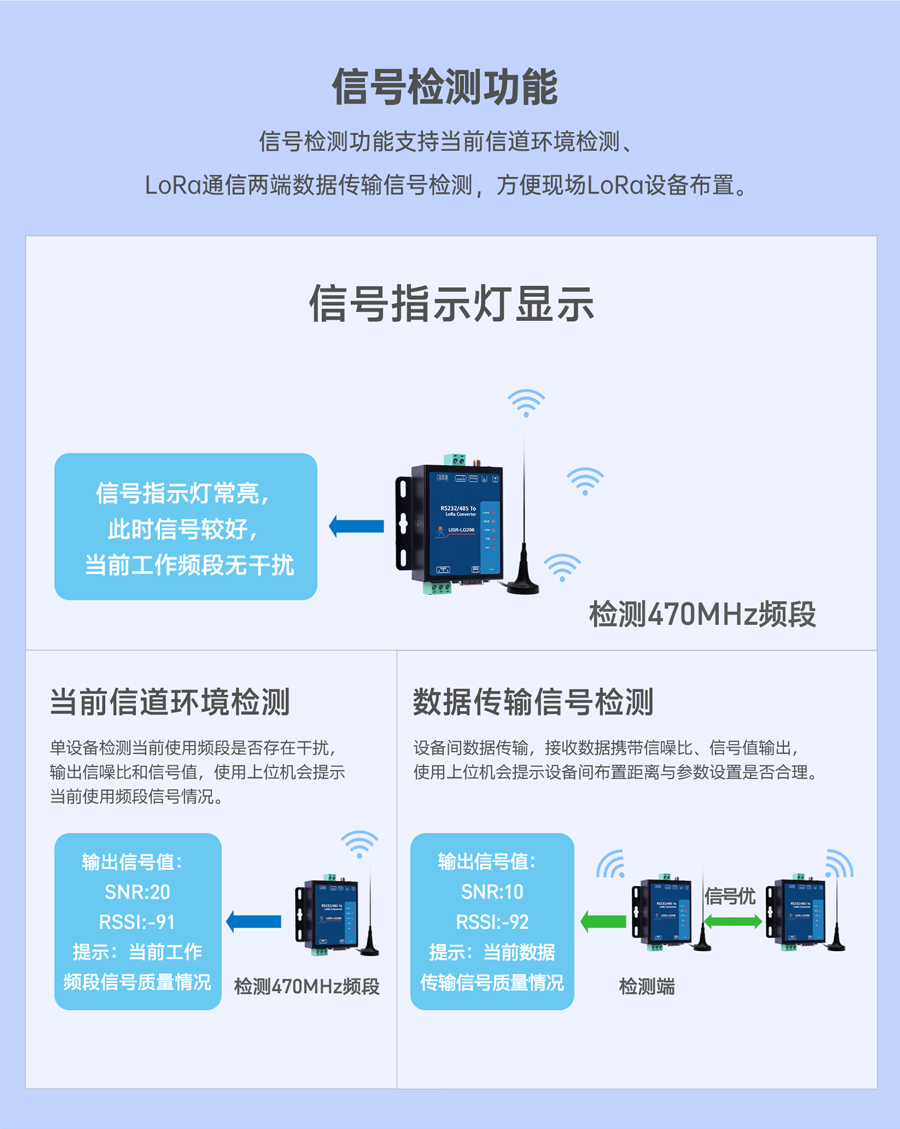 指示燈顯示信號強(qiáng)度、使用信道干擾檢測、數(shù)據(jù)通信過程檢測